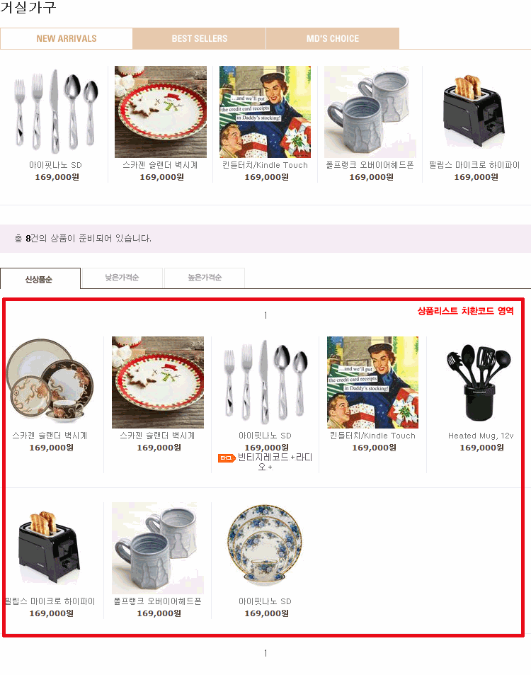 <Ä«Å×°í¸®º° »óǰÃâ·Â> ¸ÞÀÎ µðÀÚÀÎ ¼Ò½º¿¡¼­ Ä«Å×°í¸®º° »óǰÀ» Ãâ·ÂÇϰíÀÚ ÇÏ´Â À§Ä¡¿¡ ¾Æ·¡ ¸ÅÅ©·Î¸¦ »ðÀÔÇÏ½Ã¸é µË´Ï´Ù. [CODEITEM?_????????????_???????????] ? : 1~3: Ãâ·ÂÇü½Ä (1:À̹ÌÁöAÇü, 2:À̹ÌÁöBÇü, 3:¸®½ºÆ®Çü) _???????????? : Ä«Å×°í¸® ÄÚµå 12ÀÚ¸® _? : 1~3 (1:½Å»óǰ, 2:Àαâ...