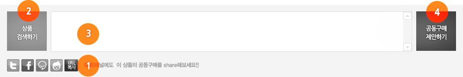 - ¾Æ·¡ Âü°í±×¸² 2¹øÀÇ »óǰ°Ë»öÇϱ⠹öưÀ» Ŭ¸¯ - »óǰ °Ë»ö ÆË¾÷¿¡¼ ³ªÀÇ °ü½É»óǰ ¸®½ºÆ®¿¡¼ ¶Ç´Â Á÷Á¢ °Ë»öÇÏ¿© »óǰÀ» ¼±Åà - °¢ SNSä³Î¿¡ °øÀ¯µÉ ¹®±¸¸¦ ¾Æ·¡ Âü°í±×¸² 3¹ø¿µ¿ª¿¡ ÀÔ·Â ÈÄ °øµ¿±¸¸Å Á¦¾ÈÀ» ¿Ï·áÇϼ¼¿ä! |