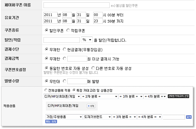½Åû¸Þ´º : ¼îÇθô °ü¸®ÀÚ > ¸¶ÄÉÆÃÁö¿ø > ÄíÆù¹ß»ý ¼­ºñ½º ¼³Á¤ > Á¾ÀÌÄíÆù°ü¸®